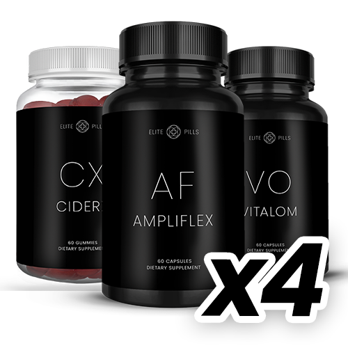 Prepare to experience peak vitality and optimize your overall well-being with Elite Pills for Men's AmpliFlex + CiderX + VitalOm Trio - the ultimate combination for peak performance and total well-being.